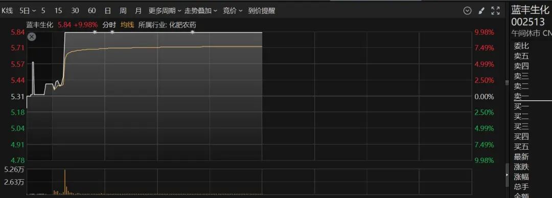 虫害防治概念近来持续走强,今日早间再度放量拉升,板块指数盘初一度直线涨逾3%,创2年多来新高。蓝丰生化垂直涨停,苏利股份亦触及涨停,6月以来大涨逾52%,红太阳、绿亨科技等涨幅居前。