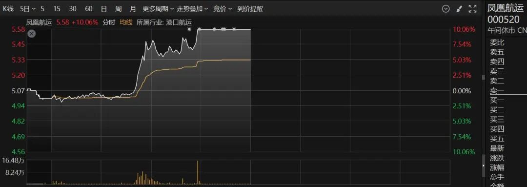 运输服务板块异动拉升,凤凰航运直线拉升涨停,国航远洋盘中涨逾10%,招商南油涨逾7%,宁波海运、中远海能等涨幅居前。