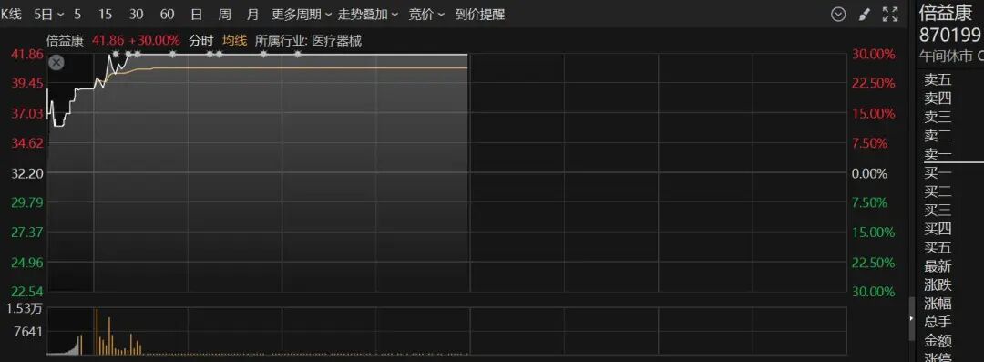 人脑工程概念早间大幅高开高走,板块指数一度放量飙升逾6%,逼近年内最高点,不到1小时成交就超过昨日全天成交。倍益康30%涨停,创历史新高,北陆药业、爱朋医疗等多股20%涨停,麒盛科技、南京熊猫等亦逆势封板。